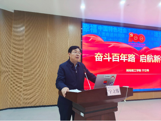 宁立伟以《奋斗百年路,起航新征程》为主题,与同学们展开交流,期望同学们传承党的精神血脉:坚持真理、坚守理想;践行初心、担当使命;不怕牺牲、英勇斗争;对党忠诚、不负人民。