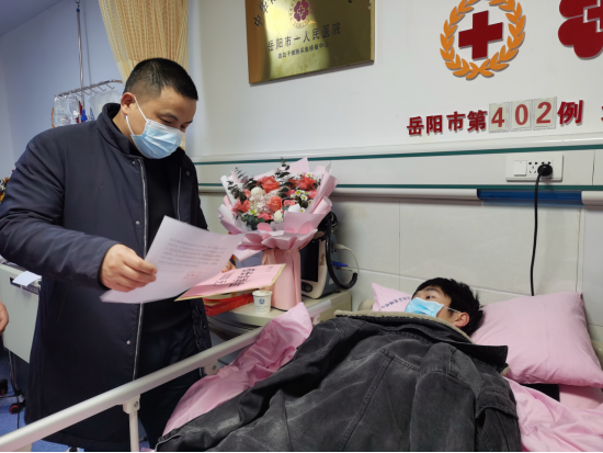 1月10日,在岳阳市中心医院造血干细胞采集室内,意昂体育员工唐斌成功捐献造血干细胞,成为岳阳市第402例、意昂体育官网2022年第1例捐献造血干细胞的志愿者。