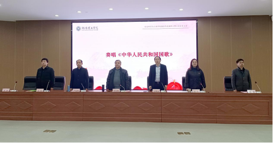 在庄严的国歌声中,大会正式进入议程。