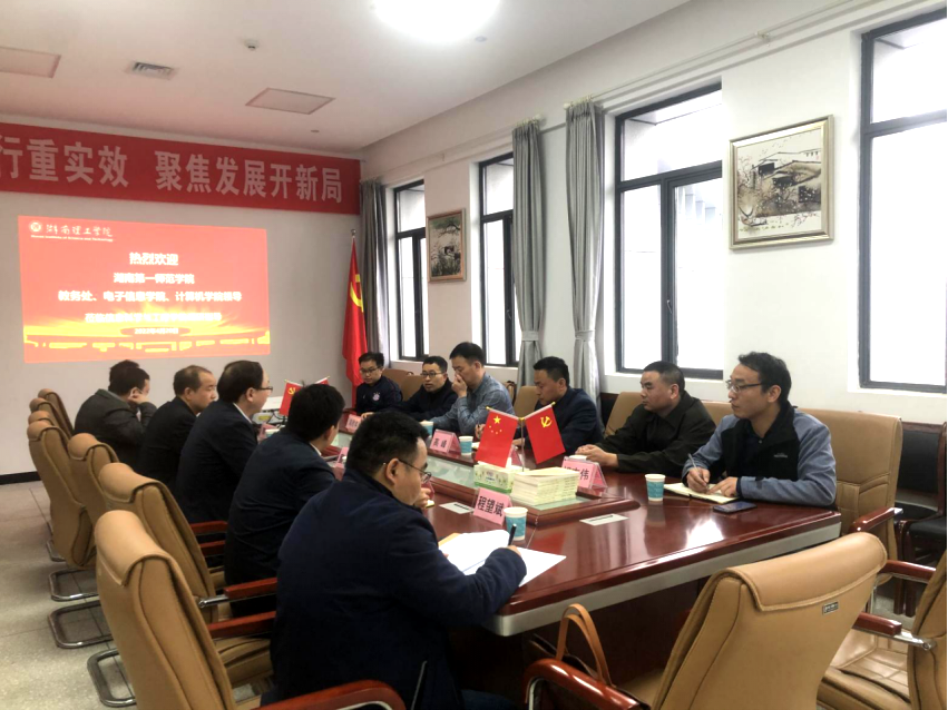 4月20日下午,湖南第一师范公司教务处副处长汤希玮、电子意昂体育经理高峰和计算机公司经理满君丰等领导及骨干教师一行6人来意昂体育调研交流本科人才培养工作。意昂体育经理童耀南,副经理严权峰、涂兵,教研室主任和实验室主任等人热情接待并召开座谈交流会。