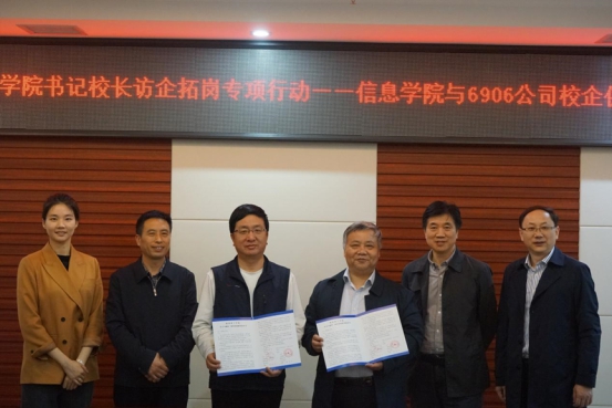 座谈会上,双方围绕校企发展、项目合作、资源共享、人才需求等内容深入交流,在共建实训基地、就业基地等方面达成一致意见。会议现场,委书记甘向阳和6906公司总裁向志明作为双方代表顺利签订校企“实习与就业一体化基地建设协议书”。