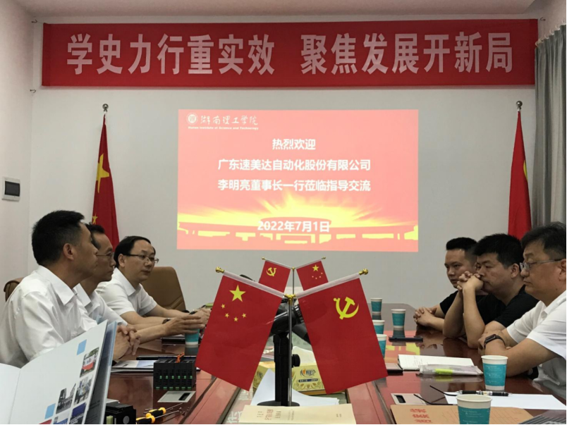 7月1日上午,广东速美达自动化股份有限公司董事长李明亮一行4人来校洽谈产学研合作事宜。座谈会在17517会议室召开,公司党委副书记张国云、副董事长丁跃浇带信息和机械两个公司的相关骨干教师代表参加,副董事长丁跃浇主持会议。