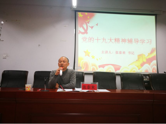 为学习宣传党的十九大会议精神,2017年12月18日下午两点半,支部书记张泰来教授于16410为公司第37期近80名入党积极分子作关于“党的十九大精神辅导学习”的党课培训讲座,公司全体辅导员参加,讲座由刘盈盈老师主持。