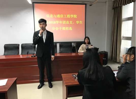 32名竞选者个个西装革履,精神抖擞。面试过程中,他们竞选目标明确,发言时从容自信,对每位评委老师所提出的问题认真回答,言行举止流露出为团学工作服务的渴望及信心。