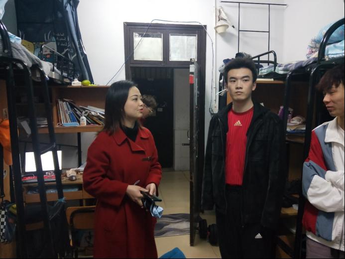 3月18日20:00,委副书记徐丹带领全体学工办老师,深入寝室看望员工。