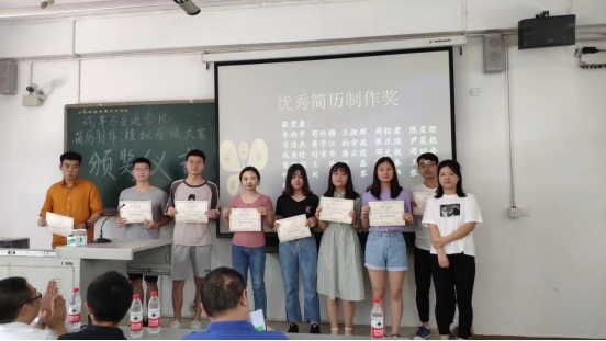 此次活动分为初赛和决赛两个环节,同学们首先根据自己的兴趣、特长、求职意向等自由制作,提交简历。初赛环节,评委根据同学们提交的简历,从外观设计、简历内容、简历用语等方面进行评选,评选确定24名选手进入决赛。决赛环节于6月22日下午在16410教室举行,各位选手依次进行了个人简历的展示,评委从选手们的演讲解读能力、职业风貌、综合印象等方面进行打分,结合初赛成绩评选确定了一二三等奖,并现场进行了颁奖仪式。最后,评委针对各位选手的简历和现场表现进行了指导和评价。