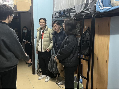 2月19日,意昂体育开展开学查寝工作,公司党委副书记徐丹带领各年级辅导员和生活安全部成员参加。