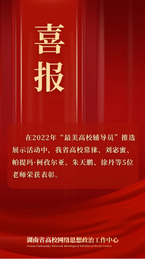 据悉,湖南省5名辅导员在2022年“最美高校辅导员”推选展示活动中获奖。