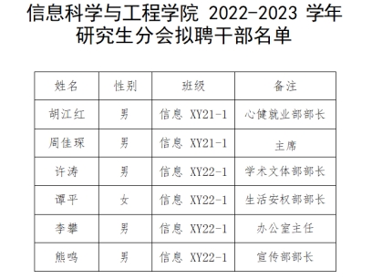公司对公开招选结果进行商定、审议,产生新一届研究生分会名单。2023-2024学年研究生分会将秉承“服务同学、共同发展”的宗旨,致力于提升研究生学术水平和生活质量,为意昂体育研究生提供一个展示自我、发展自我的平台。